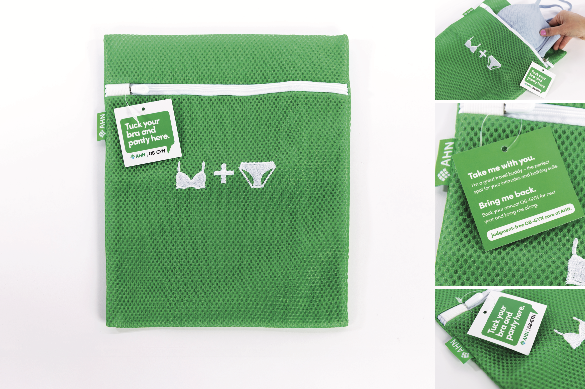 To eliminate this one anxiety during an already anxious appointment, we created the AHN Panty Pouch – a discreet place for patients to tuck away their bra and underwear during their annual exam.